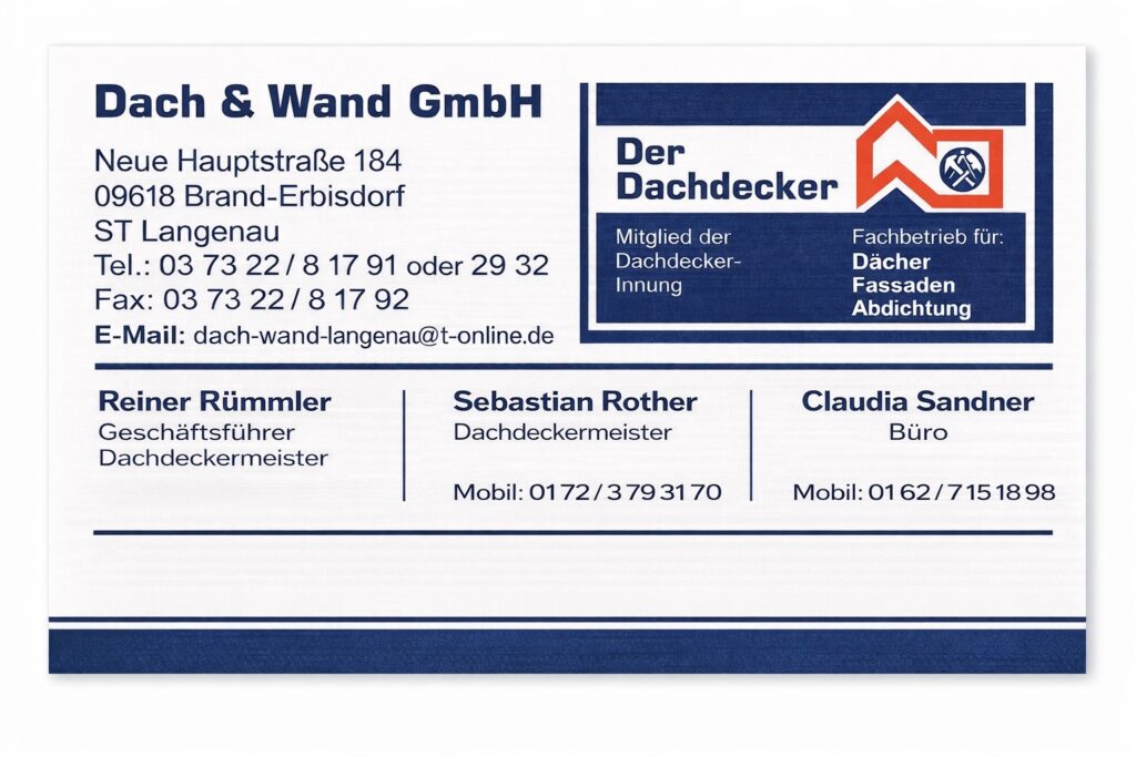 Seit 2018 arbeiten die Dach & Wand GmbH und die Dachisolierung Flöha erfolgreich zusammen und bündeln ihre Kompetenz für hochwertige Lösungen rund um Dach und Gebäudehülle.